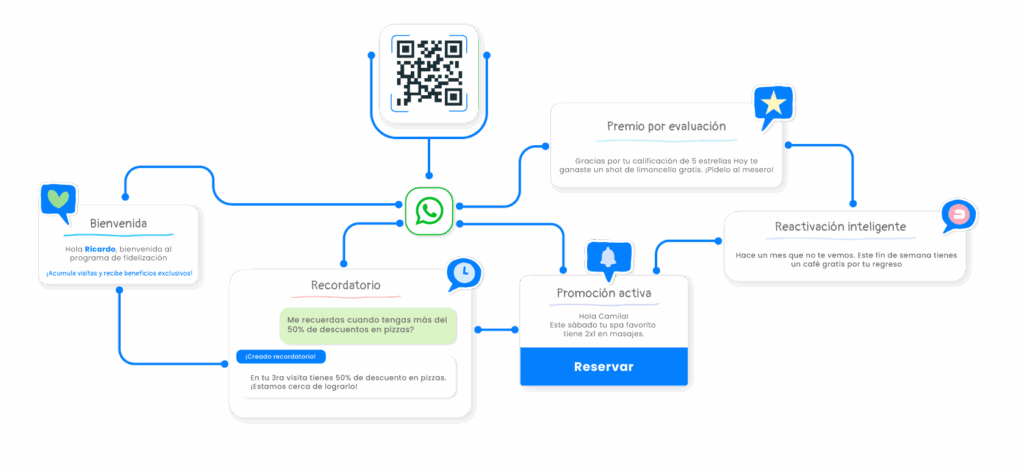 Conocer másMensajes segmentados y cartillas por visita para fidelizar: progreso visible y recompensas automáticas.